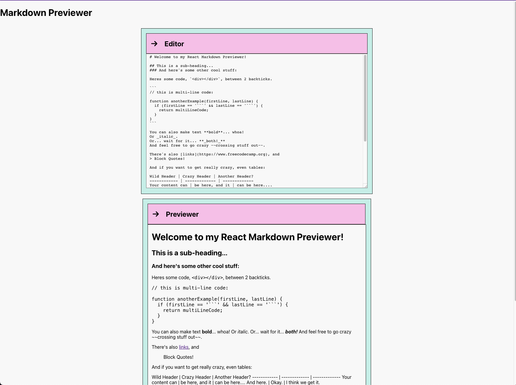 A markdown text converter using React.